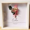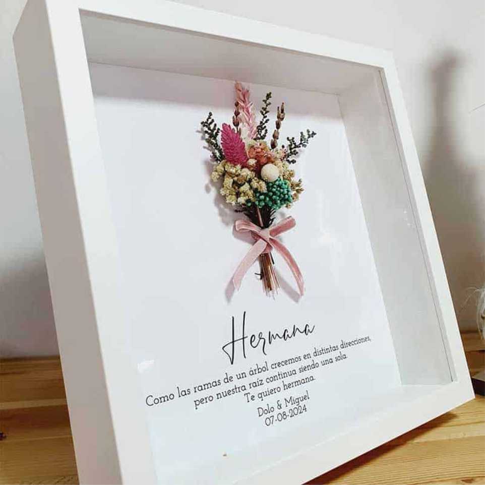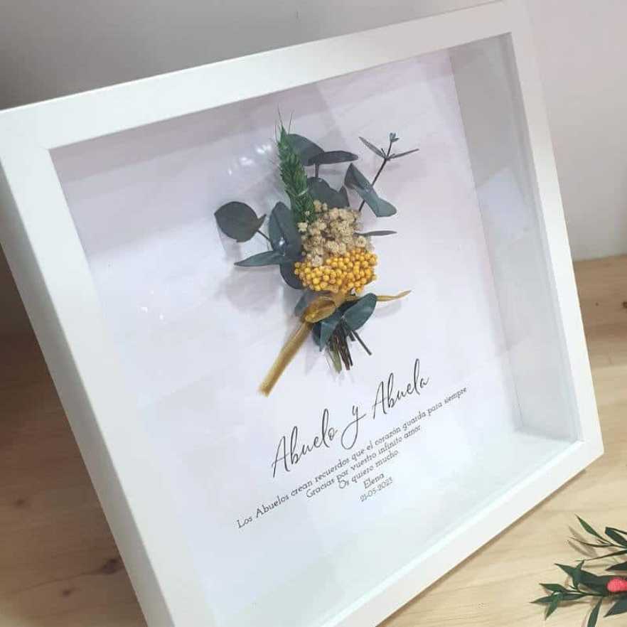 Precioso marco blanco con ramillete de flores