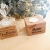 Portavelas fabricado en madera de acacia. Vela de 10 gr incluída.